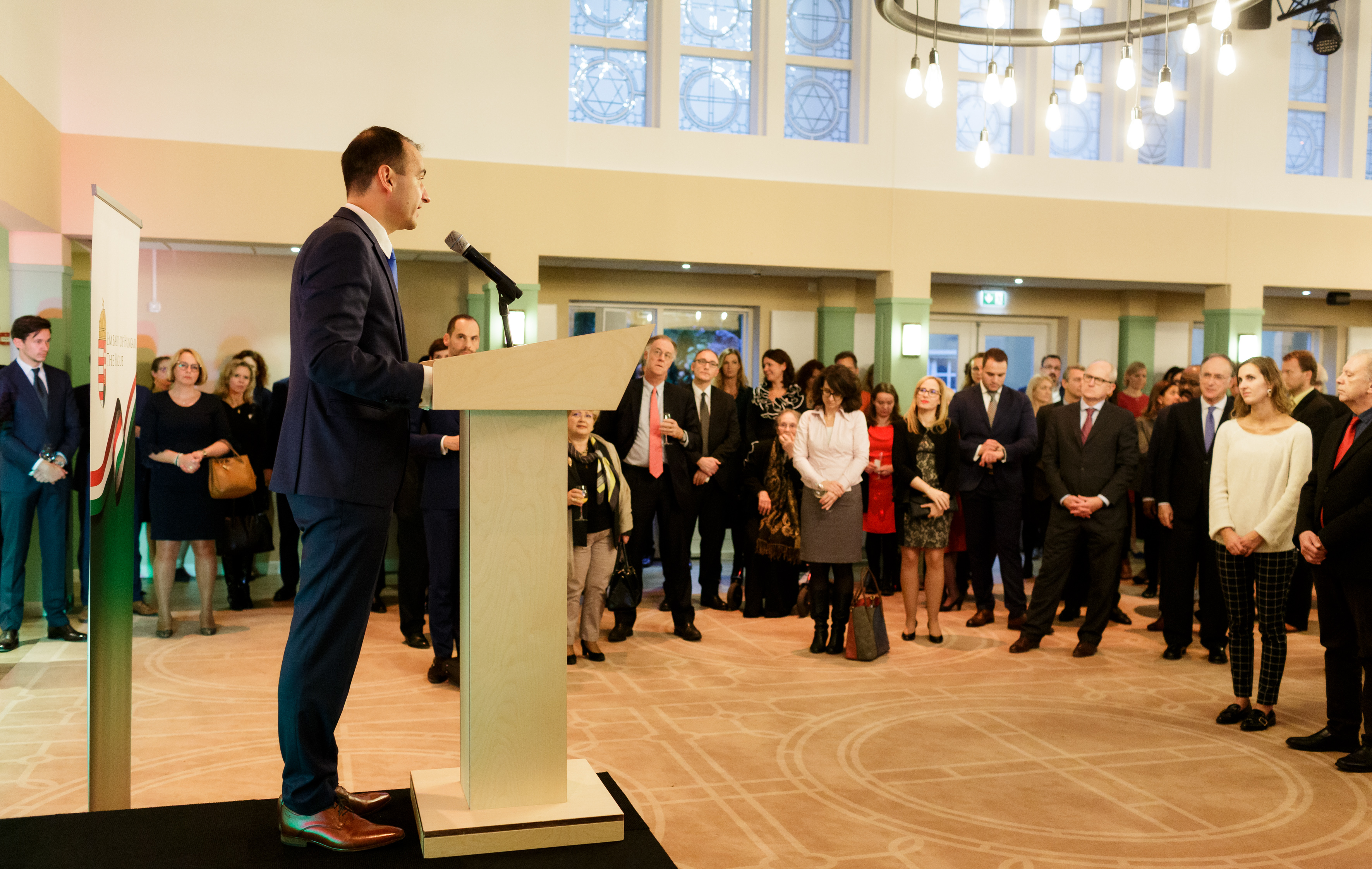 Kocsis András nagykövet köszöntőbeszédében megemlékezett az 1956-os forradalomról, beszélt az 1989-es rendszerváltásról, annak jelentőségéről a kétoldalú kapcsolatainkban, majd köszöntötte az est kiemelt vendégét, Geert van Rumund urat, Wageningen polgármesterét. A nagykövet átadta a polgármesternek a Magyar Érdemrend lovagkeresztjét, amelyet Áder János köztársasági elnök adományozott a magyar-holland kapcsolatok fejlesztését a Gödöllő és Wageningen közötti testvérvárosi kötelék erősítésével szolgáló évtizedes tevékenysége elismeréseként.