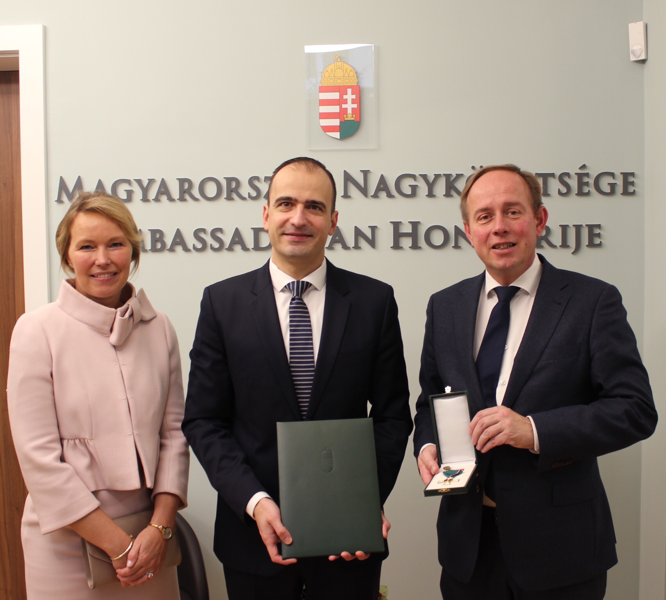 A kitüntetést dr. Kocsis András nagykövet adta át ünnepélyes keretek között november 4-én a hágai magyar nagykövetségen.