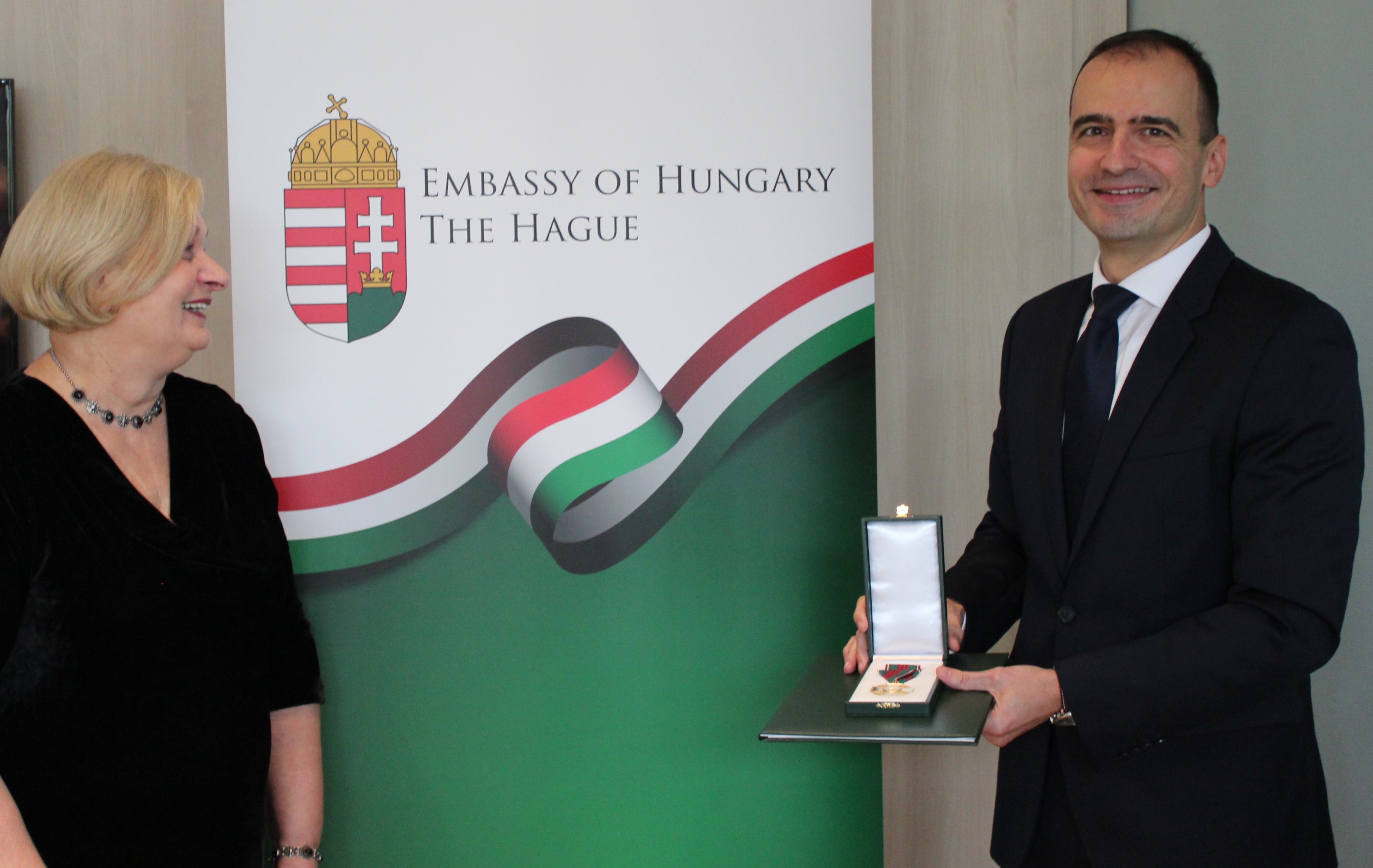 A kitüntetést dr. Kocsis András nagykövet adta át ünnepélyes keretek között október 11-én a hágai magyar nagykövetségen.